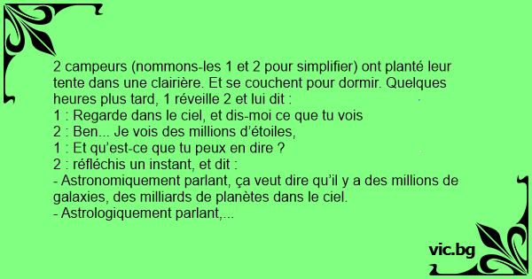 1 : Pauvre соn ! Si tu vois des millions d’étoiles, ça veut tout simplement dire qu’on s’est fait voler notre tente.