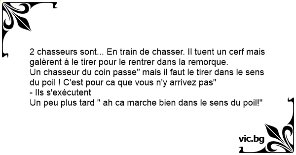 Un chasseur du coin passe" mais il faut le tirer dans le sens du poil ! C'est pour ca que vous n'y arrivez pas"