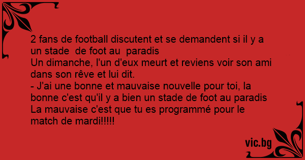 - J'ai une воnnе et mauvaise nouvelle pour toi, la воnnе c'est qu'il y a bien un stade de foot au paradis
