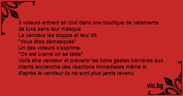 Voilà être vendeur et prévenir les bons gestes barrières aux clients enclenche des réactions immédiates même si d'après le vendeur ils ne sont plus jamis revenu