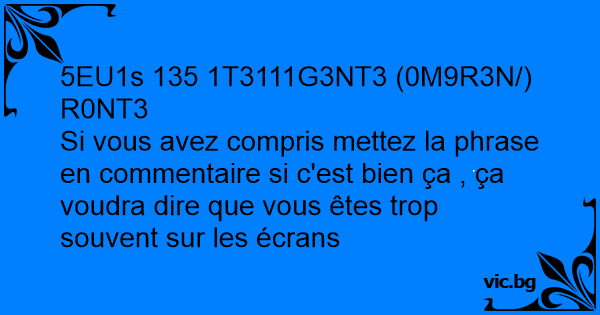 Si vous avez compris mettez la phrase en commentaire si c'est bien ça , ça voudra dire que vous êtes trop souvent sur les écrans