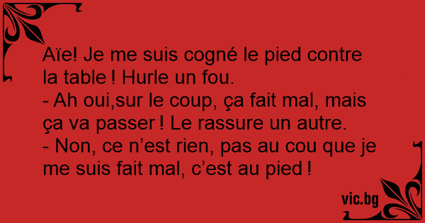 Aïe! Je me suis cogné le pied contre la table ! Hurle un fou.
