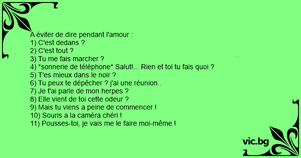 A éviter de dire pendant l'amour :