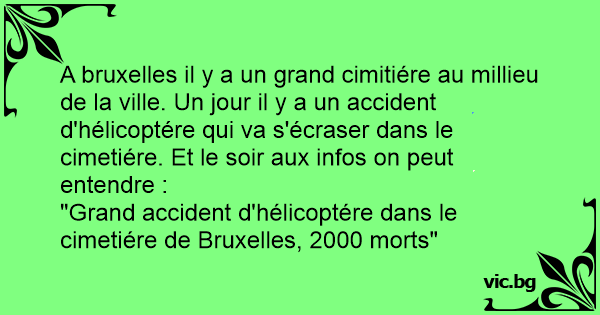 A bruxelles il y a un grand cimitiére au millieu de la ville. Un jour il y a un accident d'hélicoptére qui va s'écraser dans le cimetiére. Et le soir aux infos on peut entendre :