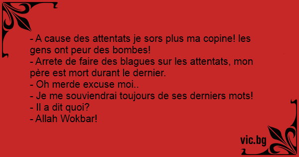 - Arrete de faire des blagues sur les attentats, mon père est mort durant le dernier.