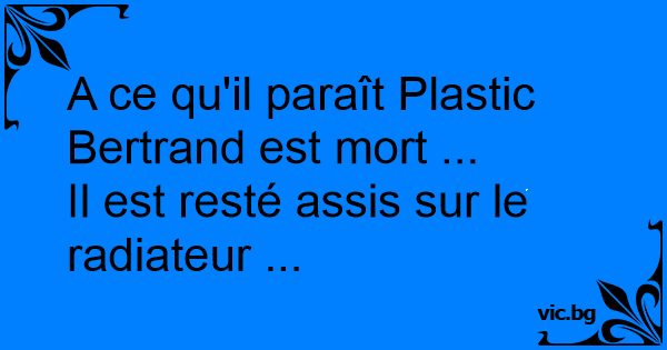 A ce qu'il paraît Plastic Bertrand est mort ...