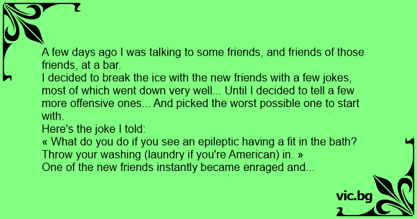I decided to break the ice with the new friends with a few jokes, most of which went down very well... Until I decided to tell a few more offensive ones... And picked the worst possible one to start with.