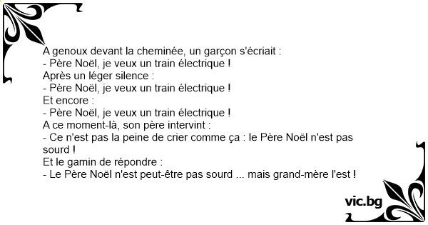 - Ce n'est pas la peine de crier comme ça : le Père Noël n'est pas sourd !