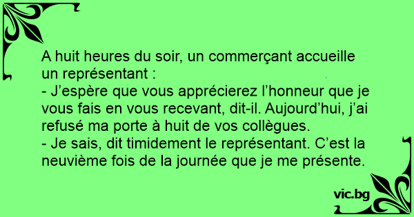 - Je sais, dit timidement le représentant. C’est la neuvième fois de la journée que je me présente.