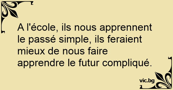 A l'école, ils nous apprennent le passé simple, ils feraient mieux de nous faire apprendre le futur compliqué.