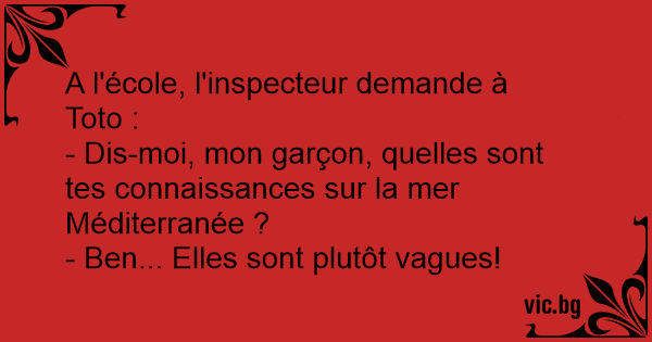 - Dis-moi, mon garçon, quelles sont tes connaissances sur la mer Méditerranée ?
