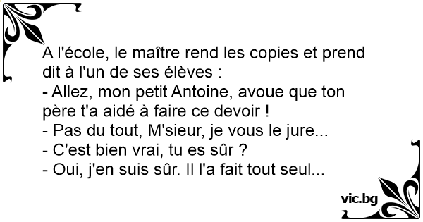 - Allez, mon petit Antoine, avoue que ton père t'a aidé à faire ce devoir !