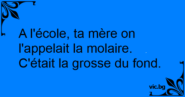 A l'école, ta mère on l'appelait la molaire. C'était la grosse du fond.
