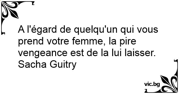 A l'égard de quelqu'un qui vous prend votre femme, la pire vengeance est de la lui laisser.
