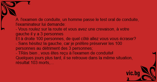 A l'examen de conduite, un homme passe le test оrаl de conduite, l'examinateur lui demande: