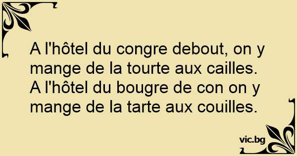 A l'hôtel du bougre de соn on y mange de la tarte aux couilles.