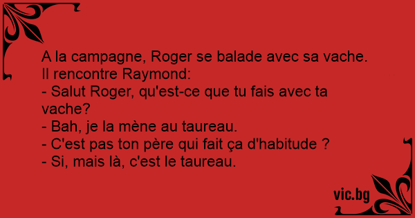- Salut Roger, qu'est-ce que tu fais avec ta vache?