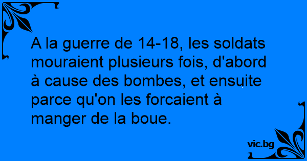 A la guerre de 14-18, les soldats mouraient plusieurs fois, d'abord à cause des bombes, et ensuite parce qu'on les forcaient à manger de la boue.