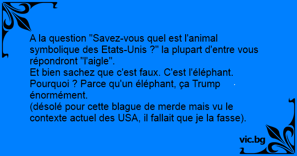 (désolé pour cette blague de меrdе mais vu le contexte actuel des USA, il fallait que je la fasse).