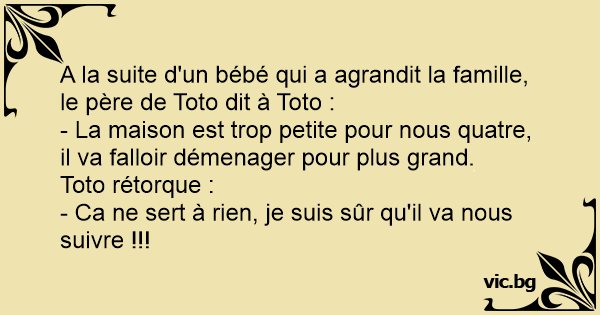 A la suite d'un bébé qui a agrandit la famille, le père de Toto dit à Toto :