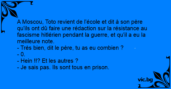A Moscou, Toto revient de l'école et dit à son père qu'ils ont dû faire une rédaction sur la résistance au fascisme hitlérien pendant la guerre, et qu'il a eu la meilleure note.