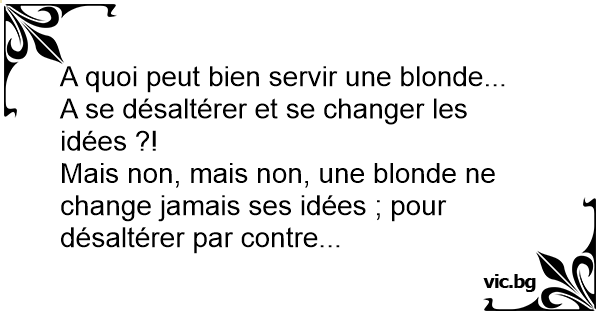 Mais non, mais non, une blonde ne change jamais ses idées ; pour désaltérer par contre...