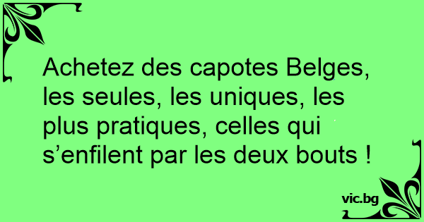 Achetez des capotes Belges, les seules, les uniques, les plus pratiques, celles qui s’enfilent par les deux bouts !