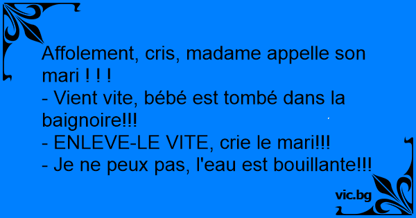 - Vient vite, bébé est tombé dans la baignoire!!!