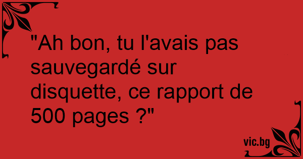 "Ah bon, tu l'avais pas sauvegardé sur disquette, ce rapport de 500 pages ?"