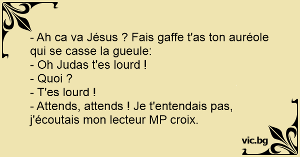 - Ah ca va Jésus ? Fais gaffe t'as ton auréole qui se casse la gueule:
