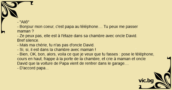 - Bonjour mon coeur, c'est papa au téléphone.... Tu peux me passer maman ?