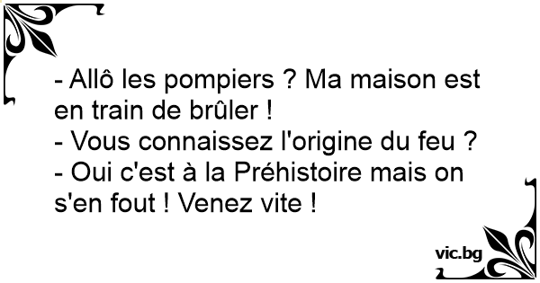 - Allô les pompiers ? Ma maison est en train de brûler !