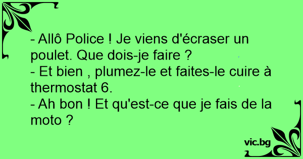 - Allô Police ! Je viens d'écraser un poulet. Que dois-je faire ?