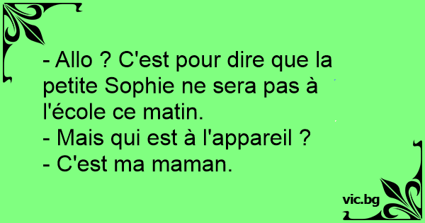- Allo ? C'est pour dire que la petite Sophie ne sera pas à l'école ce matin.