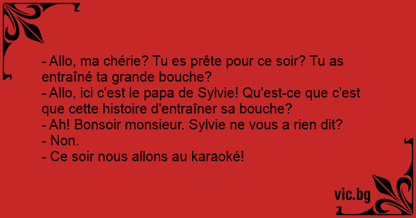 - Allo, ici c'est le papa de Sylvie! Qu'est-ce que c'est que cette histoire d'entraîner sa bouche?