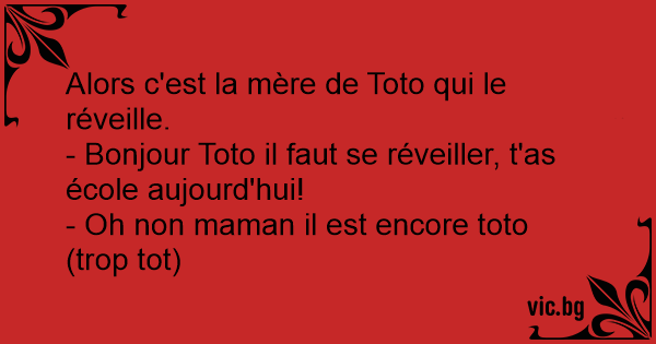 - Bonjour Toto il faut se réveiller, t'as école aujourd'hui!