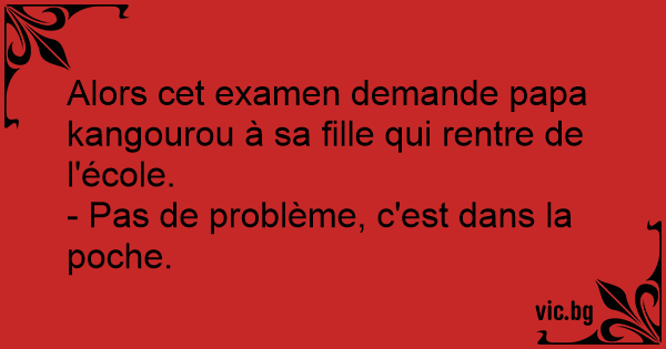 Alors cet examen demande papa kangourou à sa fille qui rentre de l'école.