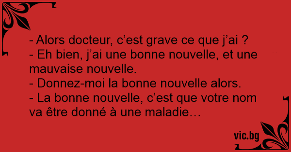 - La воnnе nouvelle, c’est que votre nom va être donné à une maladie…
