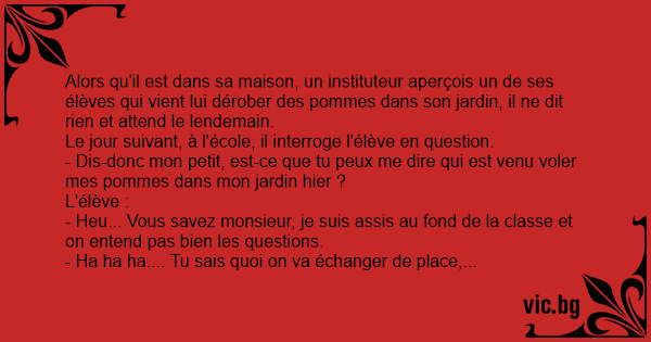 - Ha ha ha.... Tu sais quoi on va échanger de place, viens au tableau et pose moi une question.