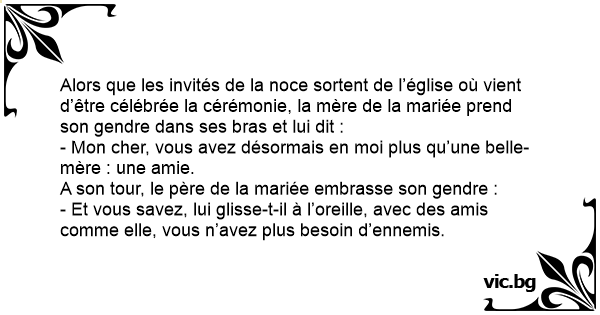 - Mon cher, vous avez désormais en moi plus qu’une belle-mère : une amie.