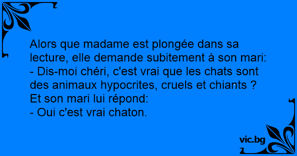 - Dis-moi chéri, c'est vrai que les chats sont des animaux hypocrites, cruels et chiants ?