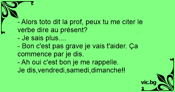 - Alors toto dit la prof, peux tu me citer le verbe dire au présent?