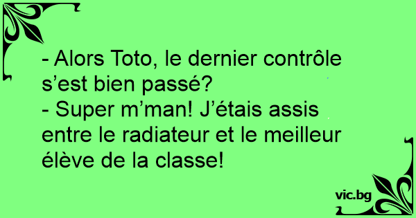 - Super m’man! J’étais assis entre le radiateur et le meilleur élève de la classe!