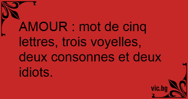 AMOUR : mot de cinq lettres, trois voyelles, deux consonnes et deux idiots.