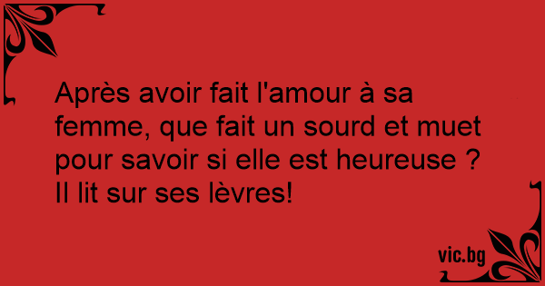 Après avoir fait l'amour à sa femme, que fait un sourd et muet pour savoir si elle est heureuse ?