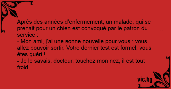 - Je le savais, docteur, touchez mon nez, il est tout froid.