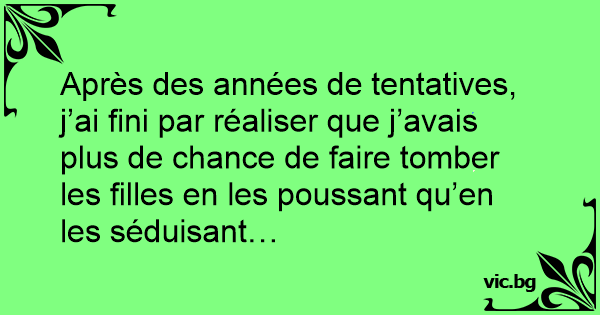 Après des années de tentatives, j’ai fini par réaliser que j’avais plus de chance de faire tomber les filles en les poussant qu’en les séduisant…