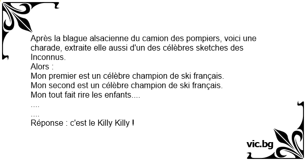 Après la blague alsacienne du camion des pompiers, voici une charade, extraite elle aussi d'un des célèbres sketches des Inconnus.