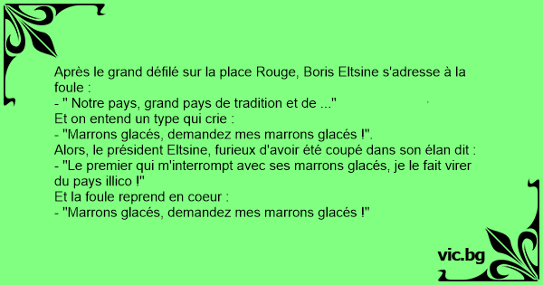 - "Le premier qui m'interrompt avec ses marrons glacés, je le fait virer du pays illico !"