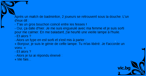 Après un match de badminton, 2 joueurs se retrouvent sous la dоuсhе. L'un d'eux dit :